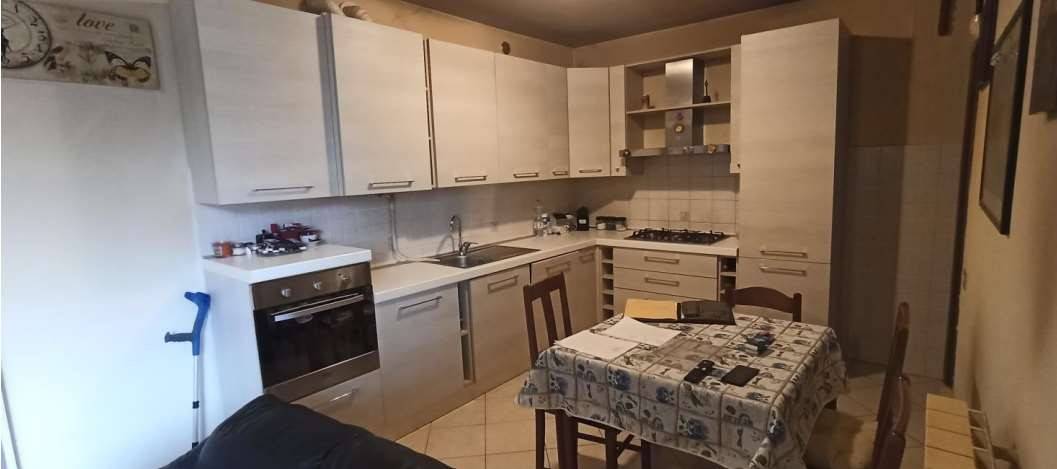 Appartamento, posto al piano secondo, composto da soggiorno-cucina, disimpegno, 2 camere, bagno, balcone, cantina al piano seminterrato, per una superficie complessiva di mq 66, e box singolo al piano seminterrato per una superficie complessiva di mq 15