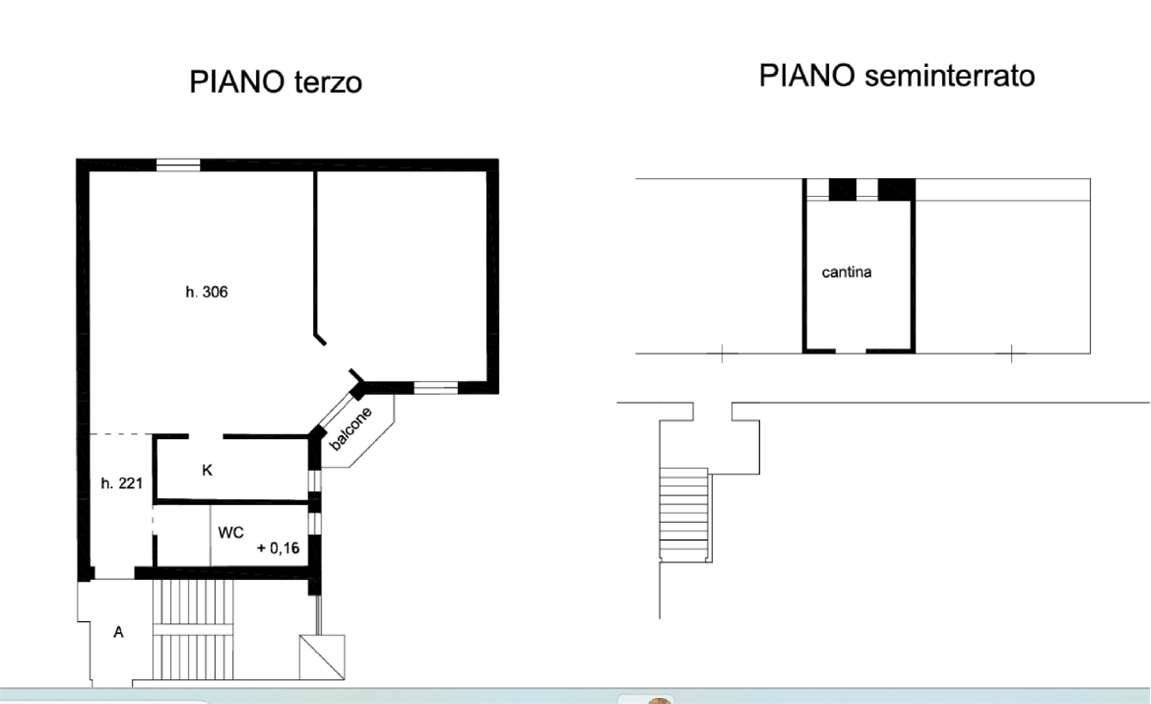 APPARTAMENTO 3° piano (quarto fuori terra) - 70 mq. con annessa cantina al piano seminterrato, doppia esposizione nord e sud, composto da ingresso, cucina, bagno, soggiorno, camera, piccolo balcone.