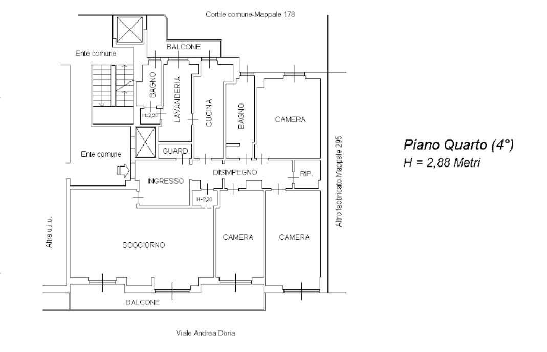 appartamento di quattro locali più servizi al piano quarto e vano cantina al piano interrato